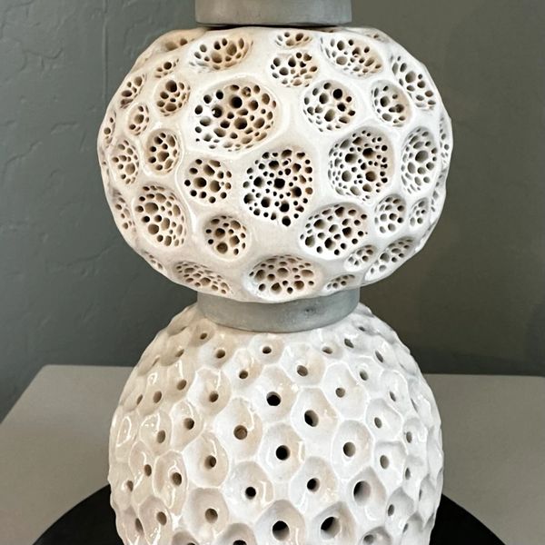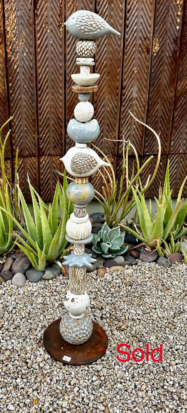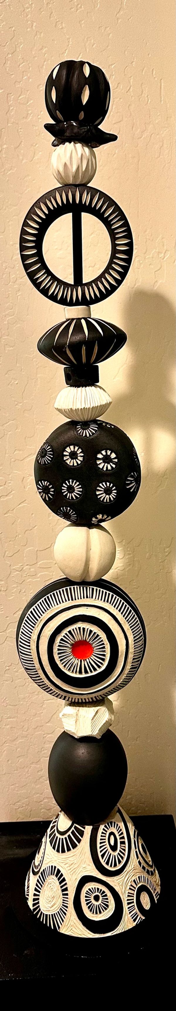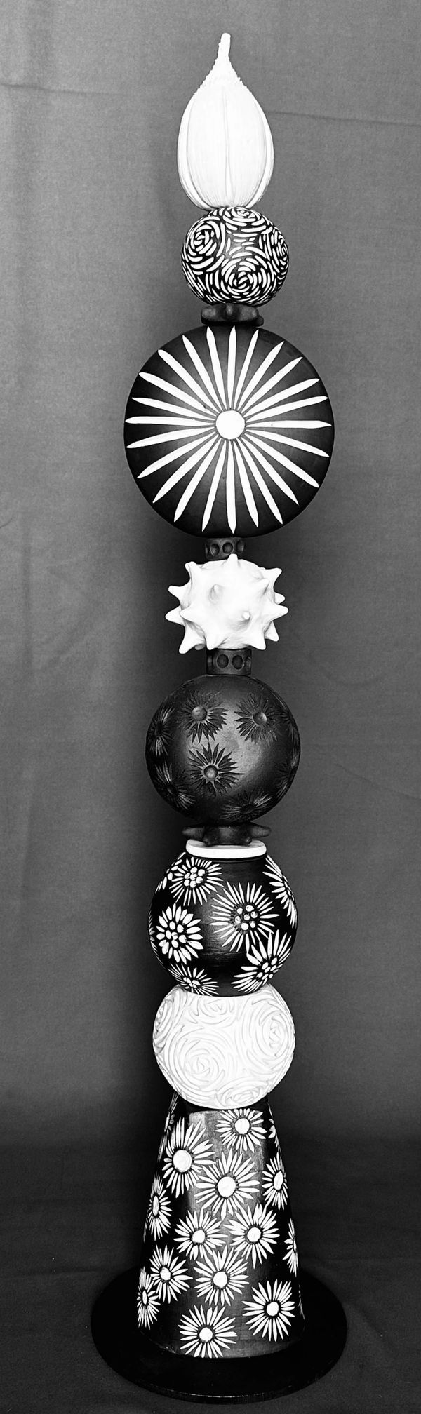 My series of totems draws its inspiration from the captivating world of rock cairns, a form of stacked rocks that I first encountered in the breathtaking landscapes of Sedona, Arizona. This series comprises several distinct themes, each embodying its own unique character. From the black and white totems, where nature's shapes and textures take on a modern twist, to the ceramic rock cairns that capture the essence of river rocks, jasper, and agate through a spectrum of beautiful glazes, my passion for collecting rocks since childhood is vividly expressed. The ocean-inspired totems offer a range of unique shells, skillfully wheel-thrown and transformed to bring the essence of these environments to life. Each totem within this series is a one-of-a-kind piece, reflecting the beauty and diversity of nature.